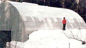 As the panels warm from the inside, the snow slides off this custom structure in Spirit Lake, ID.